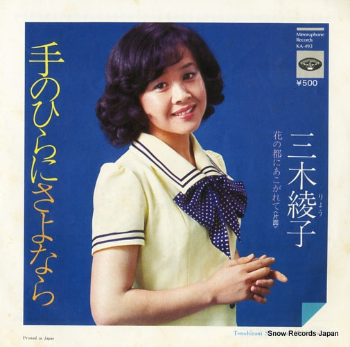 MIKI, RYOKO tenohira ni sayonara KA-493 / 7" Vinyl Record JAPAN / bw/hana no miyako ni akogarete