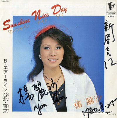 YANG, LISHA sunshine nice day MA-0005 / 7" Vinyl Record JAPAN / taiwanese singer, bw/air line taipei tokyo, yan lisa
