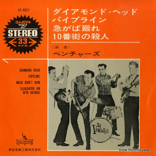 VENTURES, THE diamond head LP-40517" JAPAN Vinyl Record red wax vinyl, original price=f500yen, a1.diamond head a2.pipeline b1.walk don't run b2.slaughter on 10th avenue