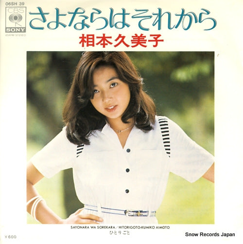 AIMOTO, KUMIKO sayonara wa sorekara 06SH39 / 7" Vinyl Record JAPAN / bw/hitorigoto