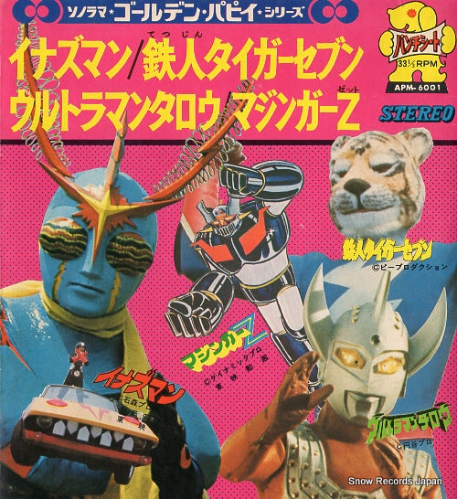 SHIMON, MASATO tatakae inazman APM-6001 / 7" Vinyl Record JAPAN / red wax vinyl, a2.tetsujin tiger seven(yuki hide) b1.ultraman taro b2.mazinger z