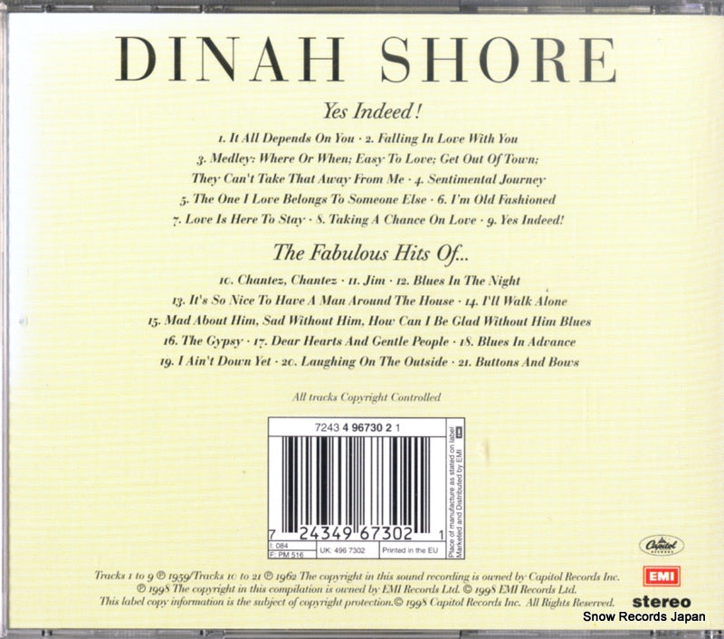 CD: SHORE, DINAH - ¡Sí, de hecho! / los fabulosos éxitos de - 724349673021
