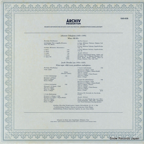 Notas | manga desplegable, jacob obrecht; missa "sub tuum presidium confugimus", cappella lipsiensis, cinta dañada en la cubierta, daños en las esquinas de la cubierta, el disco tiene rayones |