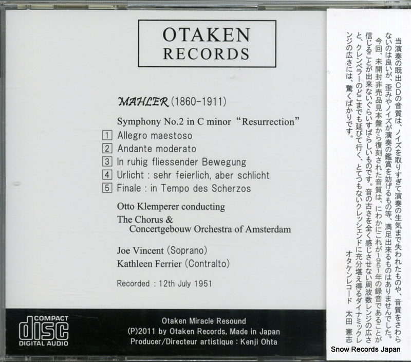 CD: KLEMPERER, OTTO - mahler; sinfonía nº 2 - TKC-341