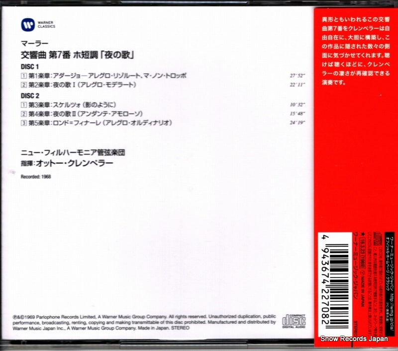 CD: KLEMPERER, OTTO - mahler; sinfonía nº 7 - WPCS-23235