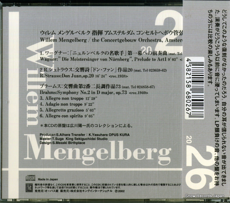 CD: MENGELBERG, WILLEM - brahms; sinfonía nº2 don juan - OPK-2026