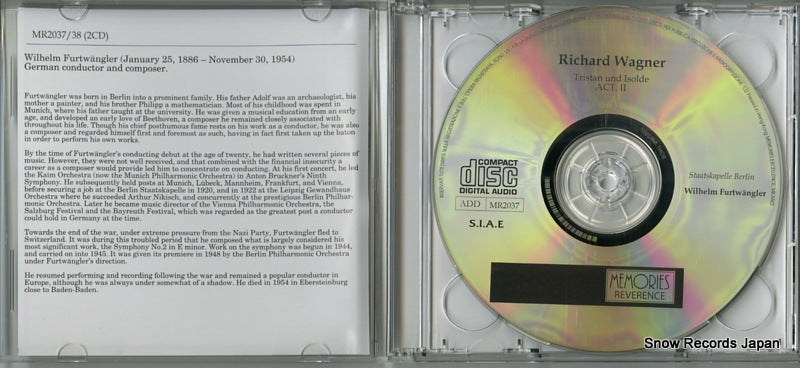 CD: FURTWANGLER, WILHELM - wagner; Tristán e Isolda acto 2 y acto 3 - MR2037