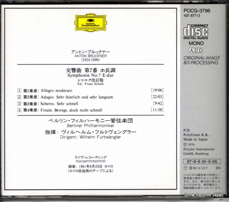 CD: FURTWANGLER, WILHELM - bruckner; sinfonía nº 7 - POCG-3796