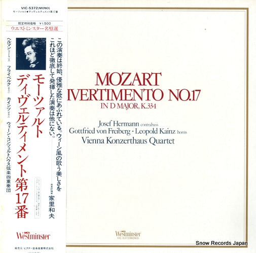 VIENNA KONZERTHAUS QUARTET, THE mozart; divertimento no.17 in d major k.334 VIC-5372 12" Vinyl Record JAPAN