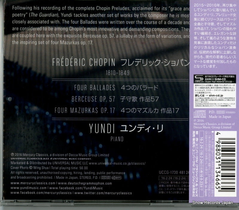 CD : YUNDI - Chopin ; ballades - UCCG-1730