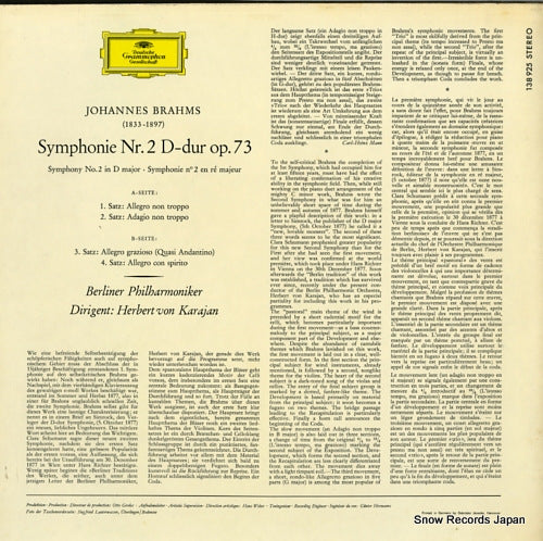 KARAJAN, HERBERT VON - brahms; symphonie n°2 - 138925