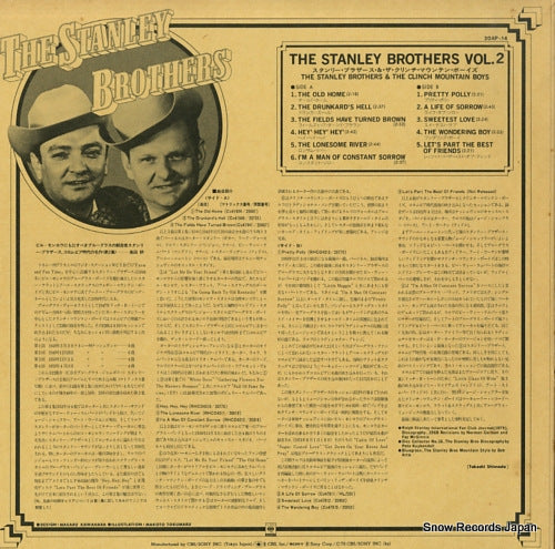 Notes | 11trk, les frères Stanley et les Clinch Mountain Boys, usure de la couverture, plis sur la couverture, taches sur la couverture, dommages aux coins de la couverture, taches sur l'étiquette, le disque a des rayures |
