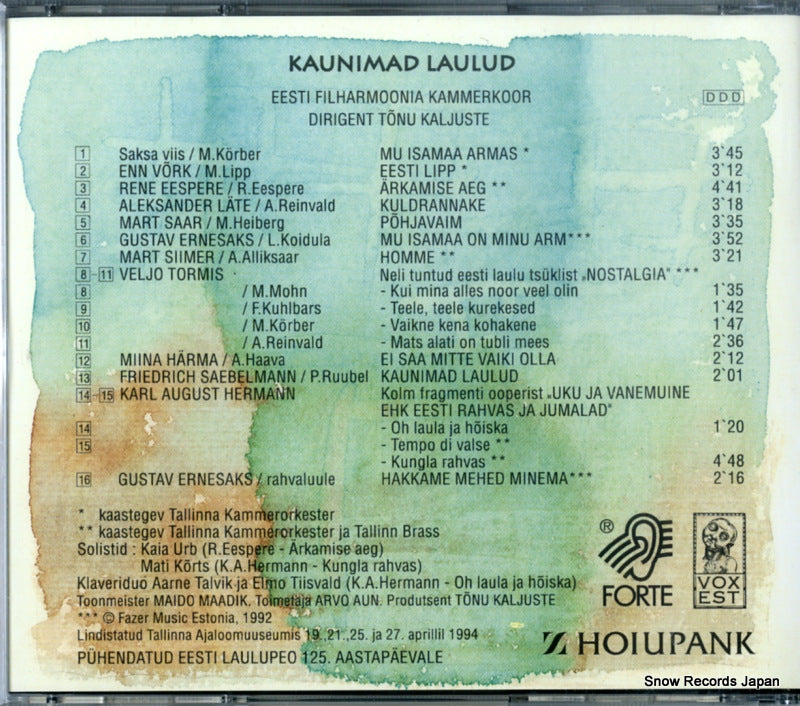 CD : ESSTI FILHARMOONIA KAMMERKOOR - kaunimado laulud - FD0010/2