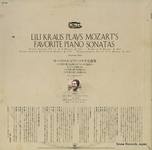 KRAUS, LILI - Lili Kraus joue les sonates pour piano préférées de Mozart - FCCA489