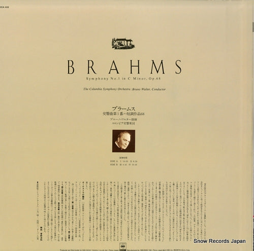 WALTER, BRUNO - Brahms ; Symphonie n° 1 en do mineur, op. 68 - FCCA433