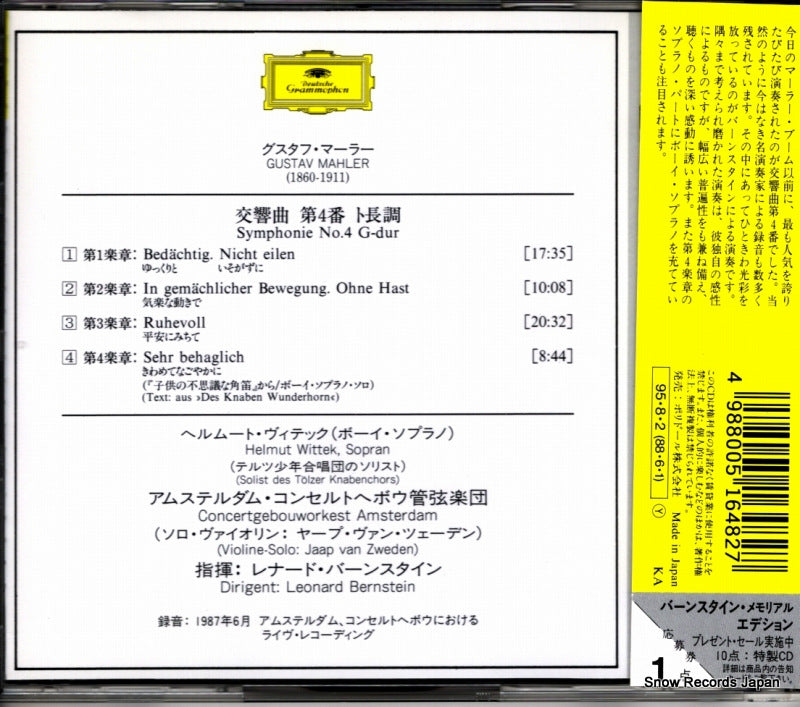 CD : BERNSTEIN, LENARD - Mahler ; symphonie n° 4 - POCG-9582