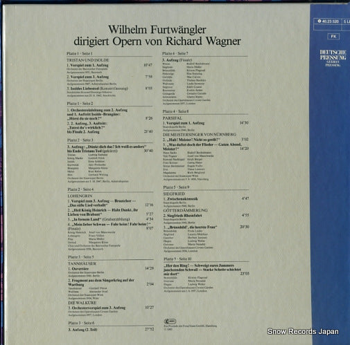 Notes | Couverture du coffret, Wilhelm Furtwangler, Richard Wagner, usure de la couverture, taches sur la couverture, dommages aux coins de la couverture, taches sur l'étiquette, le disque présente des rayures |