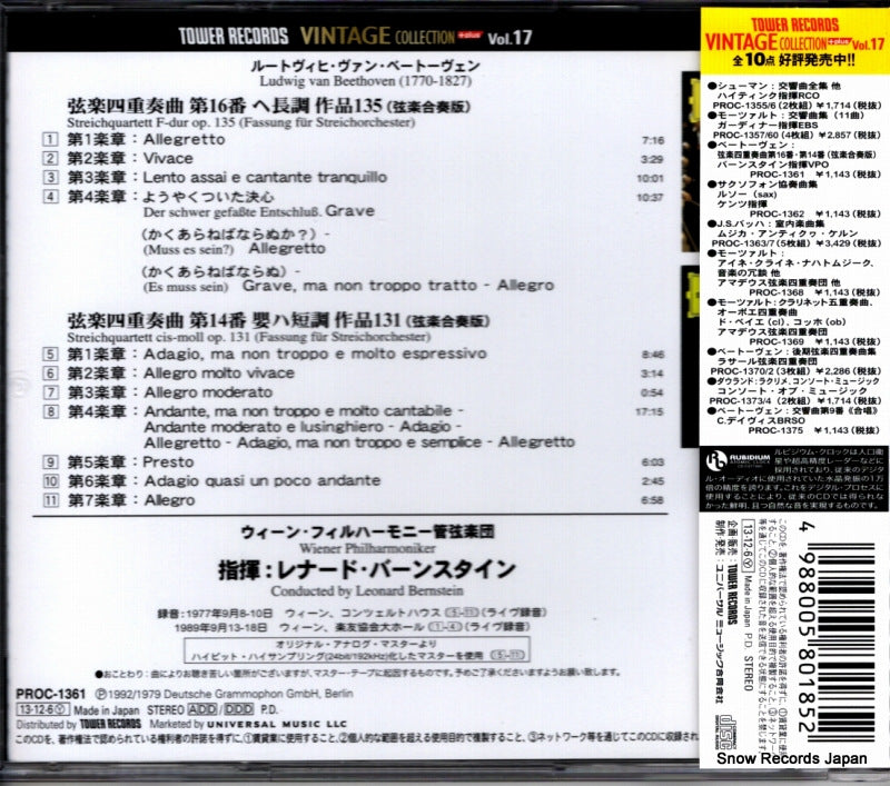 CD : BERNSTEIN, LÉONARD - Beethoven ; quatuor à cordes streichquartett, op.131 - PROC-1361